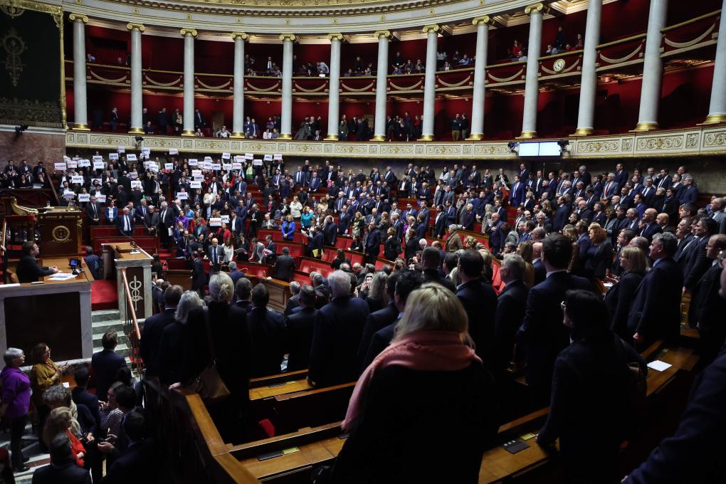 这是2023年12月19日在法国巴黎国民议会拍摄的关于新移民法投票现场。新华社发(里特·埃斯摄)