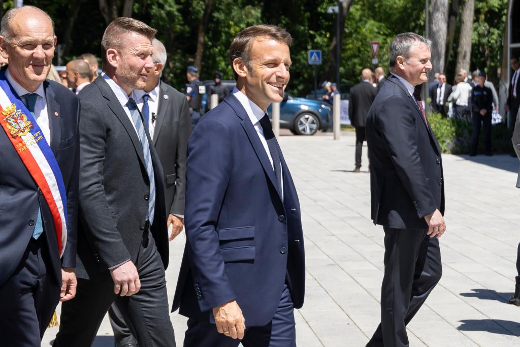 6月9日,在法国勒图凯市,法国总统马克龙在参加欧洲议会选举投票后走出投票站。新华社发(弗兰克·博阿姆摄)